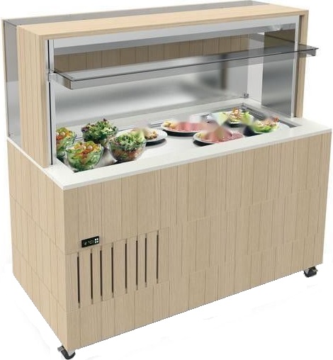 Стол тепловой шведский Enofrigo DOGE WALL BM 1400 ВЕНГЕ A1DOGEWBM14/W используется на предприятиях общественного питания и торговли для демонстрации, раздачи и поддержания температурного режима вторых блюд. Оснащен нагревательным элементом, регулировка температуры при помощи механического термостата. Открытая витрина дает возможность покупателям самостоятельно выбрать себе готовые блюда, салаты и приправы. Установка - передвижная, полка - сплошная, материал корпуса - дерево.