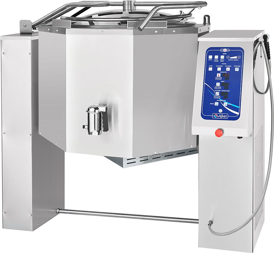 Варочный котел Abat КПЭМ-100-ОМ2 с функциями опрокидывания, перемешивания и охлаждения предназначен для приготовления вторых и третьих блюд, бульонов, соусов и десертов, а также для кипячения воды на предприятиях пищевой промышленности и общественного питания. Модель оснащена электронной панелью управления и сливным краном, позволяющим производить слив готового продукта без опрокидывания.