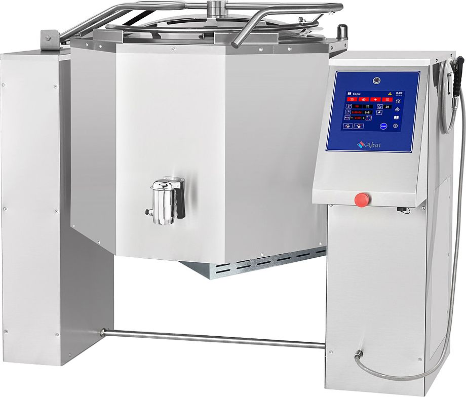 Варочный котел Abat КПЭМ-200-ОМП с функциями опрокидывания, перемешивания и охлаждения предназначен для приготовления вторых и третьих блюд, бульонов, соусов и десертов, а также для кипячения воды на предприятиях пищевой промышленности и общественного питания. Модель оснащена панелью управления с электронным TFT-экраном, пультом программного управления и сливным краном, позволяющим производить слив готового продукта без опрокидывания.