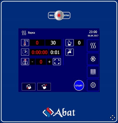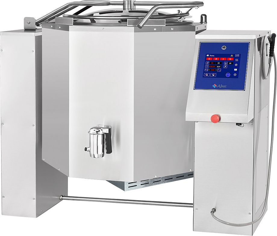 Варочный котел Abat КПЭМ-250-ОМП с функциями опрокидывания, перемешивания и охлаждения предназначен для приготовления вторых и третьих блюд, бульонов, соусов и десертов, а также для кипячения воды на предприятиях пищевой промышленности и общественного питания. Модель оснащена панелью управления с электронным TFT-экраном, пультом программного управления и сливным краном, позволяющим производить слив готового продукта без опрокидывания.