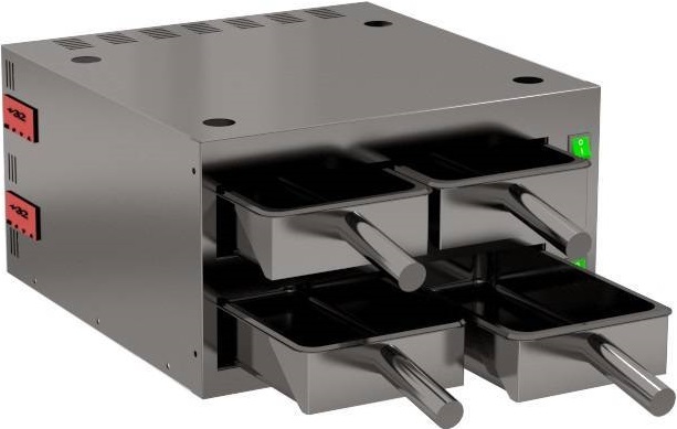 Мультихолдер (чикен-кабинет) КАМИК ШТ-329563 используется на предприятиях общественного питания, торговли и пищевых производствах для поддержания готовых вторых блюд в горячем состоянии. Модель оснащена электронной регулировкой температуры на каждый уровень и 2 уровнями на 2 совка. Материал корпуса - высококачественная нержавеющая сталь AISI 430.