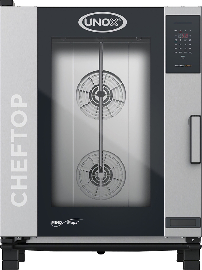 Пароконвектомат UNOX XEVC-0711-EZRM серии CHEFTOP MIND.Maps™ ZERO предназначен для приготовления различных блюд, выпечки хлебобулочных и кондитерских изделий на предприятиях общественного питания и торговли, в пекарнях и кондитерских. Модель оснащена встроенной в дверь светодиодной LED-подсветкой и C-образными с зубчатыми нишами направляющими. Внутреннее открывающееся стекло облегчает чистку и обеспечивает максимальную гигиену. Камера с закругленными углами выполнена из нержавеющей стали AISI 304, направляющие - из профилированной стали, дверной замок - из высокопрочного самосмазывающегося технополимера, внутренний штифт дверной ручки - из углеродного волокна.