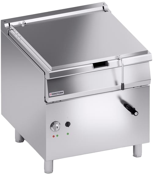 Опрокидывающая сковорода Veroterm VT4BREP10MA серии 700 используется на предприятии общественного питания, торговли и пищевых производствах для жарки, тушения, пассерования, припускания овощей, мяса, рыбы и других продуктов питания. Модель оснащена механическим управлением, ручным приводом, индикаторами, регулятором температуры и ножками. Материал изделия - высококачественная нержавеющая сталь AISI 430 (толщина 1 мм).
