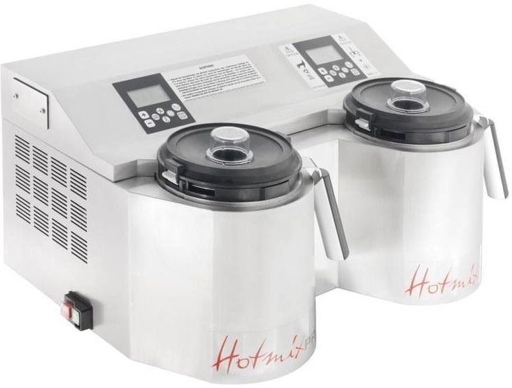 Термомиксер HotmixPRO Combi используется на предприятиях общественного питания и торговли для измельчения, взбивания, смешивания, эмульгирования, поджаривания и пастеризации продуктов при низких и высоких температурах. Модель оснащена 1 охлаждаемой и 1 нагреваемой коническими чашами. Корпус, ножи и подшипники изготовлены из нержавеющей стали.