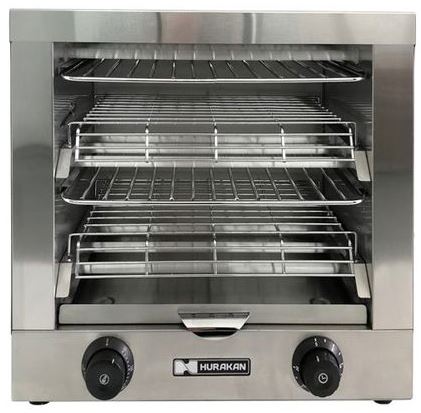 Тостер Hurakan HKN-TOP6 предназначен для подогрева и поджарки кусочков хлеба на предприятиях общественного питания и торговли. Модель оснащена 9 кварцевыми трубками в качестве нагревательных элементов, поддоном для крошек и регулируемыми по высоте ножками.