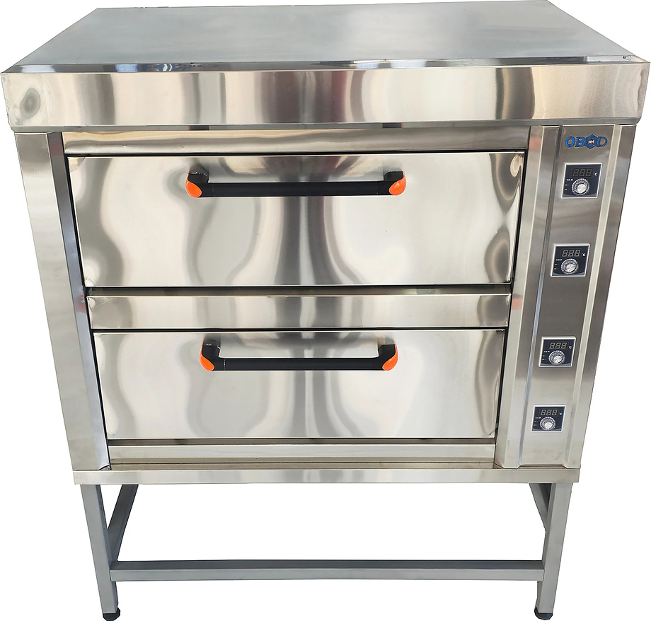 Духовой шкаф OBOD/2 уровня предназначена для приготовления различных блюд и выпечки хлебобулочных и кондитерских изделий на предприятиях общественного питания, торговли и пищевых производствах. Модель оборудована электромеханическим управлением, регулировкой температуры, 2 термостатами для каждой камеры, жаропрочным стеклом и внутренней подсветкой. Материал подов - углеродистая сталь толщиной 3 мм, материал дверц - высококачественная нержавеющая сталь, материал ТЭН - нержавеющая сталь AISI 304.