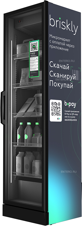 Микромаркет Briskly M5 предназначается для размещения, охлаждения, демонстрации и бесконтактной продажи продуктов, готовых блюд, комплексных обедов, снеков, напитков и непродовольственных товаров в бизнес-центрах, спорт клубах, учебных и административных учреждениях, вокзалах и аэропортах. Модель оборудована умным модулем, электронным замком, датчиками температуры и камерой наблюдения с углом обзора 120°. Материал корпуса - окрашенный металл, полок - металлическая решетка, дверной рамы - алюминиевый профиль.