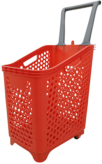 Корзина-тележка Корбис HPB65 используется в крупных гипермаркетах и магазинах самообслуживания для перемещения продуктов, текстиля, кухонной утвари, химии и др. Модель оснащена фиксированной ручкой и колесиками. Материал корзины и ручек - ударопрочный пластик.